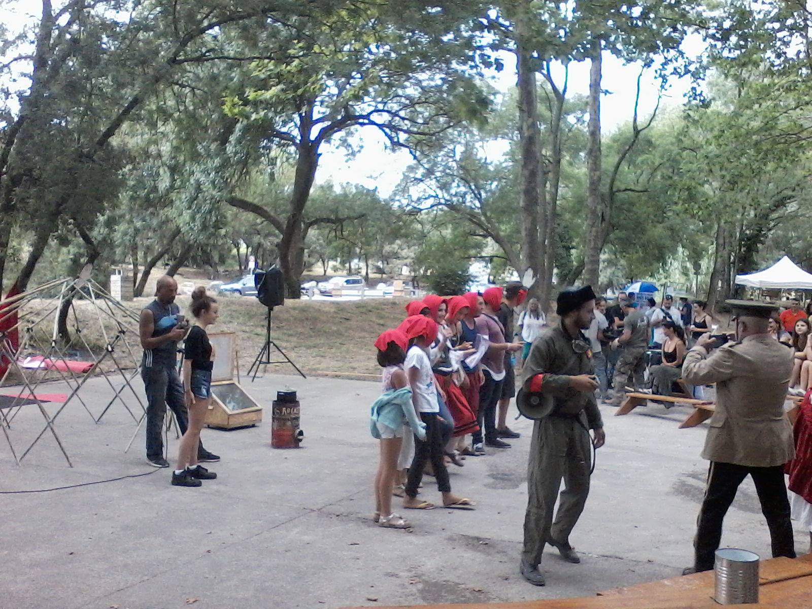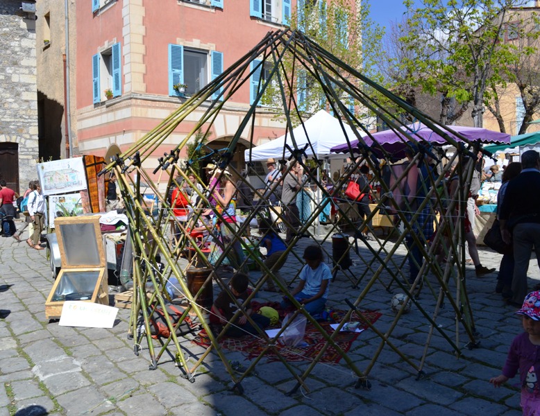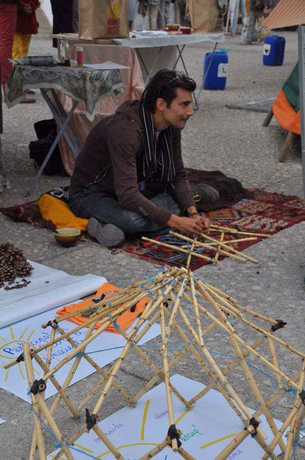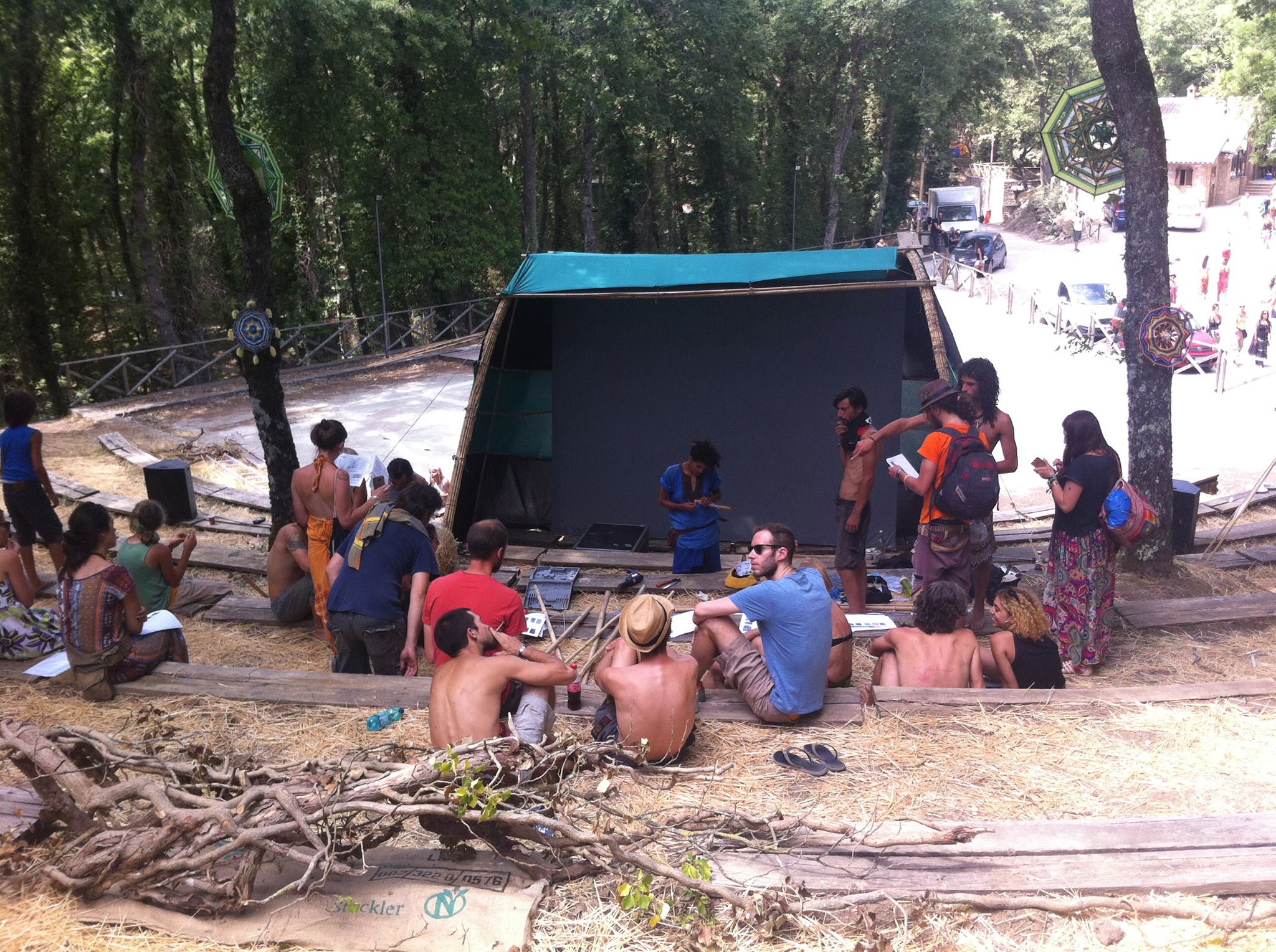 Il nostro scopo era quello di mostrare ciò che era possibile fare con materiali naturali e riciclati.. così abbiamo messo su una roulotte e un camion una Flex- Yurta, una cucina solare, una stufa a effetto razzo, un sistema di fito-purificazione (trattamento delle piante con acqua), un giardino verticale (fatto con dei pallet). Eravamo 8 persone (di cui 5 adulti e 3 bambini) e insieme siamo partiti per insegnare alle persone di questi luoghi colpiti dal terremoto questi semplici ma intelligenti strumenti per vivere in maniera semplice e autonoma. Abbiamo anche portato i nostri DVD e flyers per dare informazioni su come coltivare la spirulina, sulla salute delle donne etc e sicuramente su come costruire una casa antisismica.