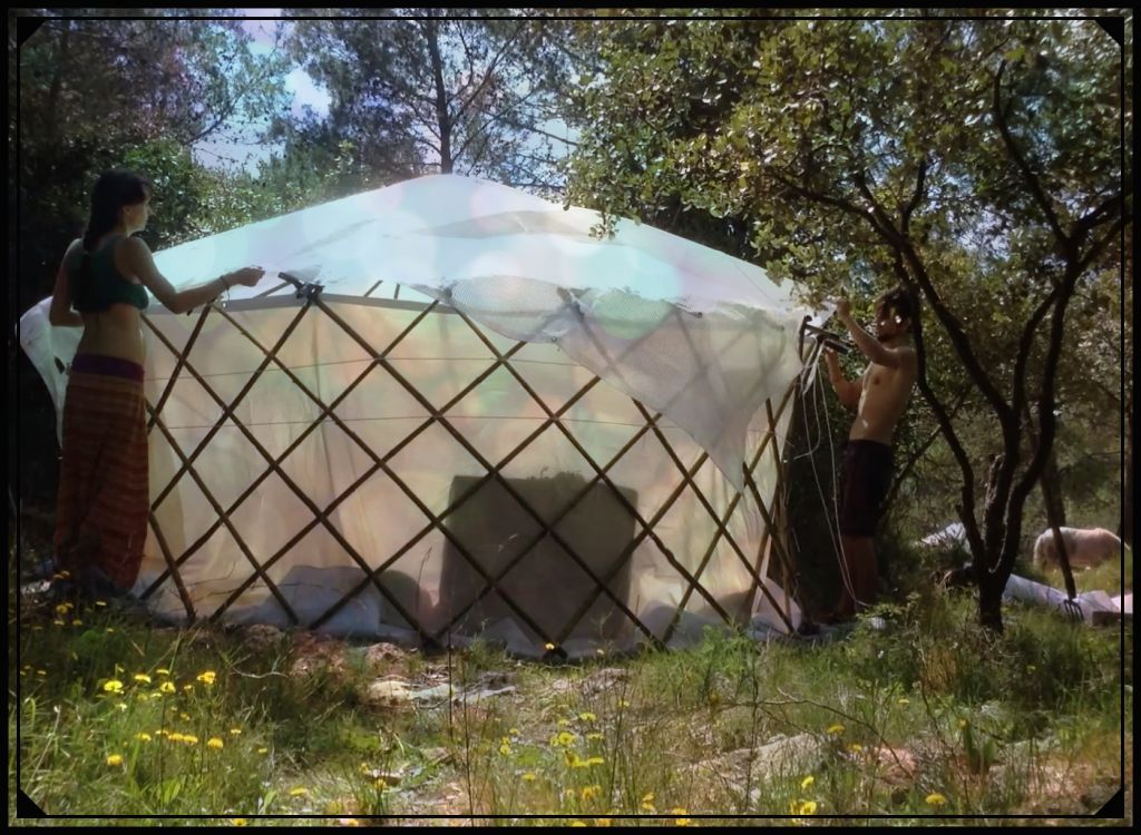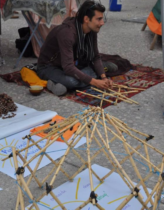 La 1ère flexyourte que j’ai réalisé avec des ami-e-s était en décembre 2016 pour la Roulotte Fai Da Te, une caravane écologique et sociale visant à promouvoir les low-techs de base en Italie, aux sinistrés des séismes.