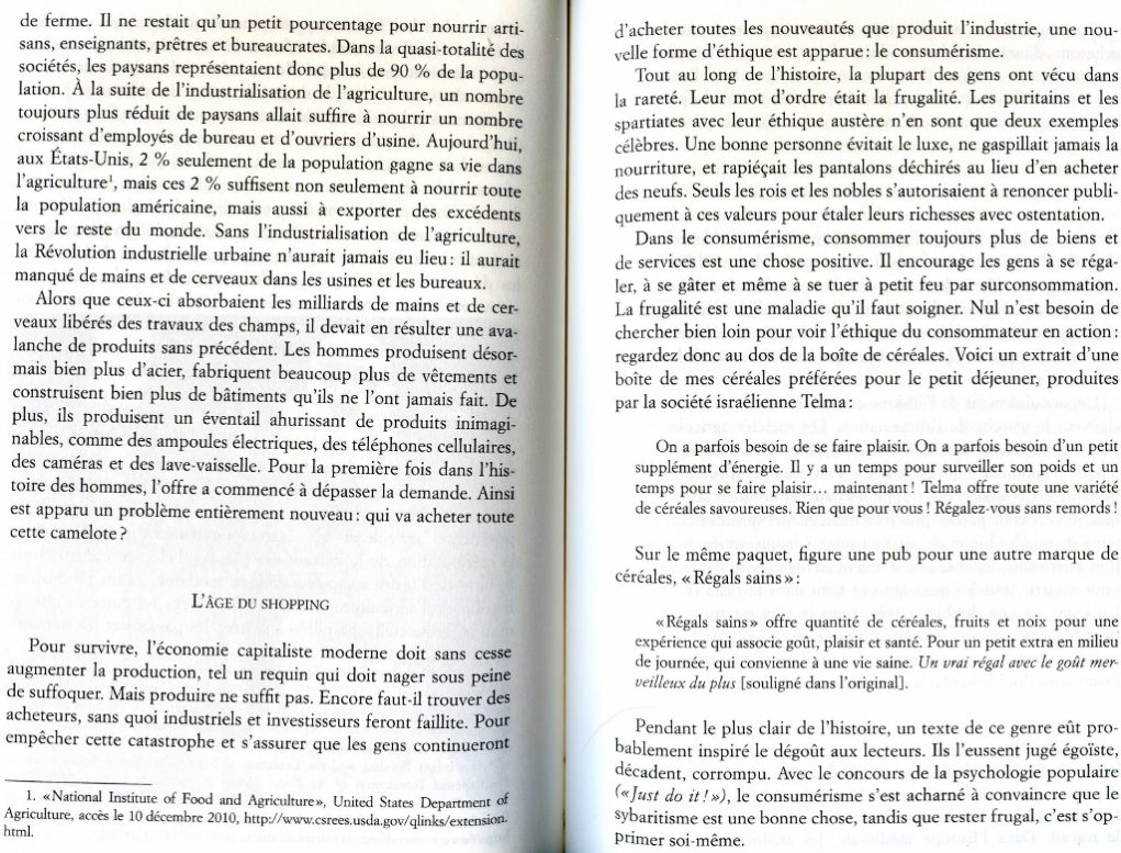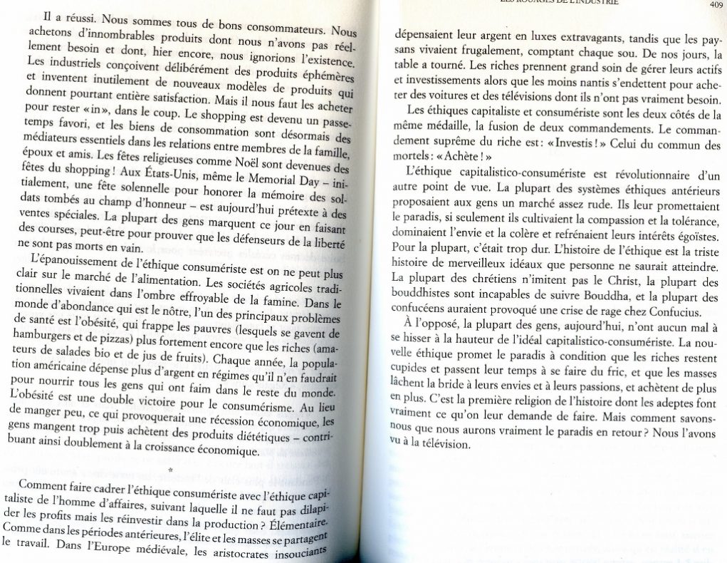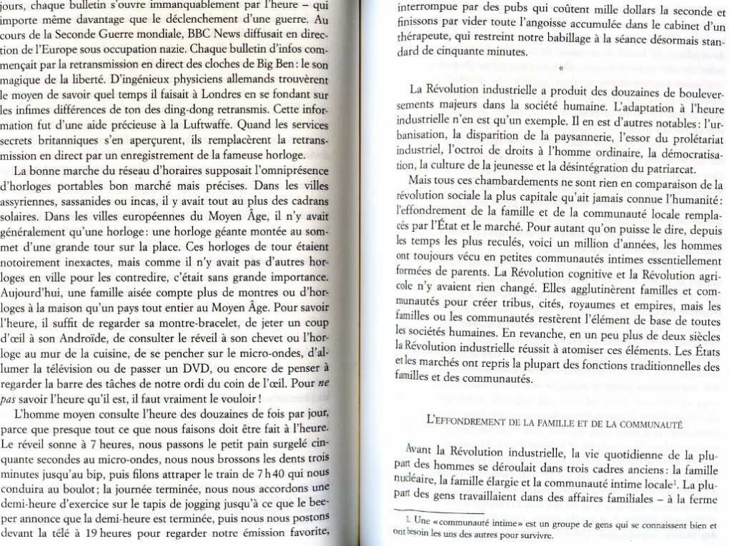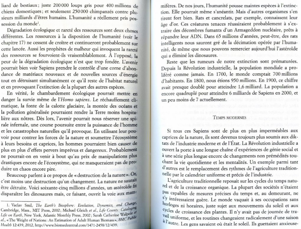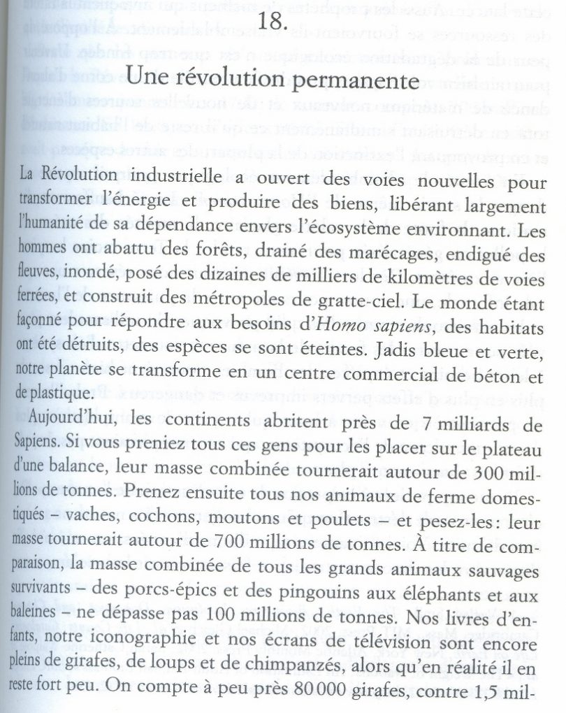 Extraits de « Sapiens, une brève histoire de l’Humanité » de Yuval Noah Harari, qui donne à voir de façon objective l’évolution qui s’est opérée durant les générations précédentes. Je sais, ce n’est pas habituel de mettre autant de pages scannées d’un livre mais je le trouve tellement intéressant…