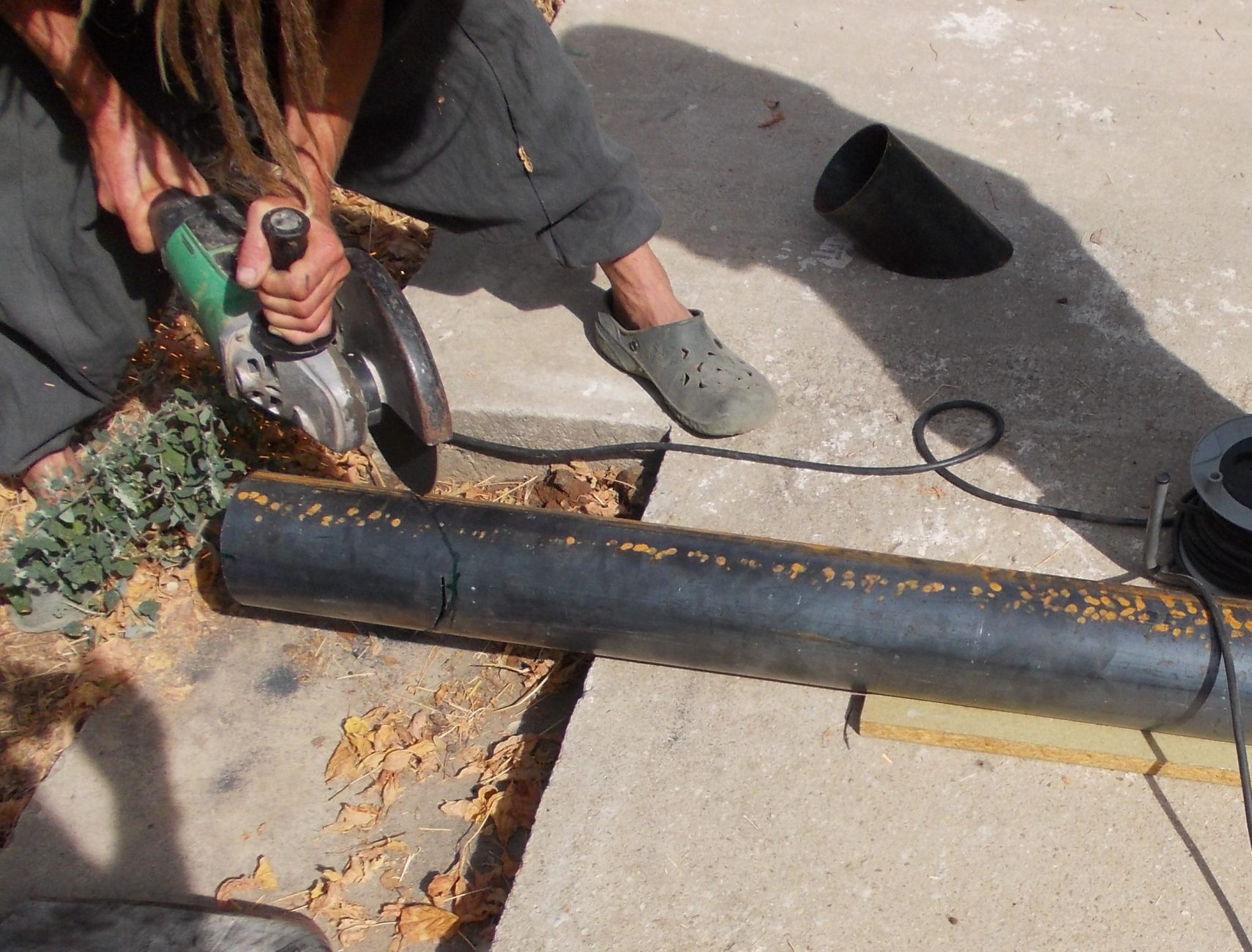 En train de chauffer un bambou pour faire un didgeridoo !